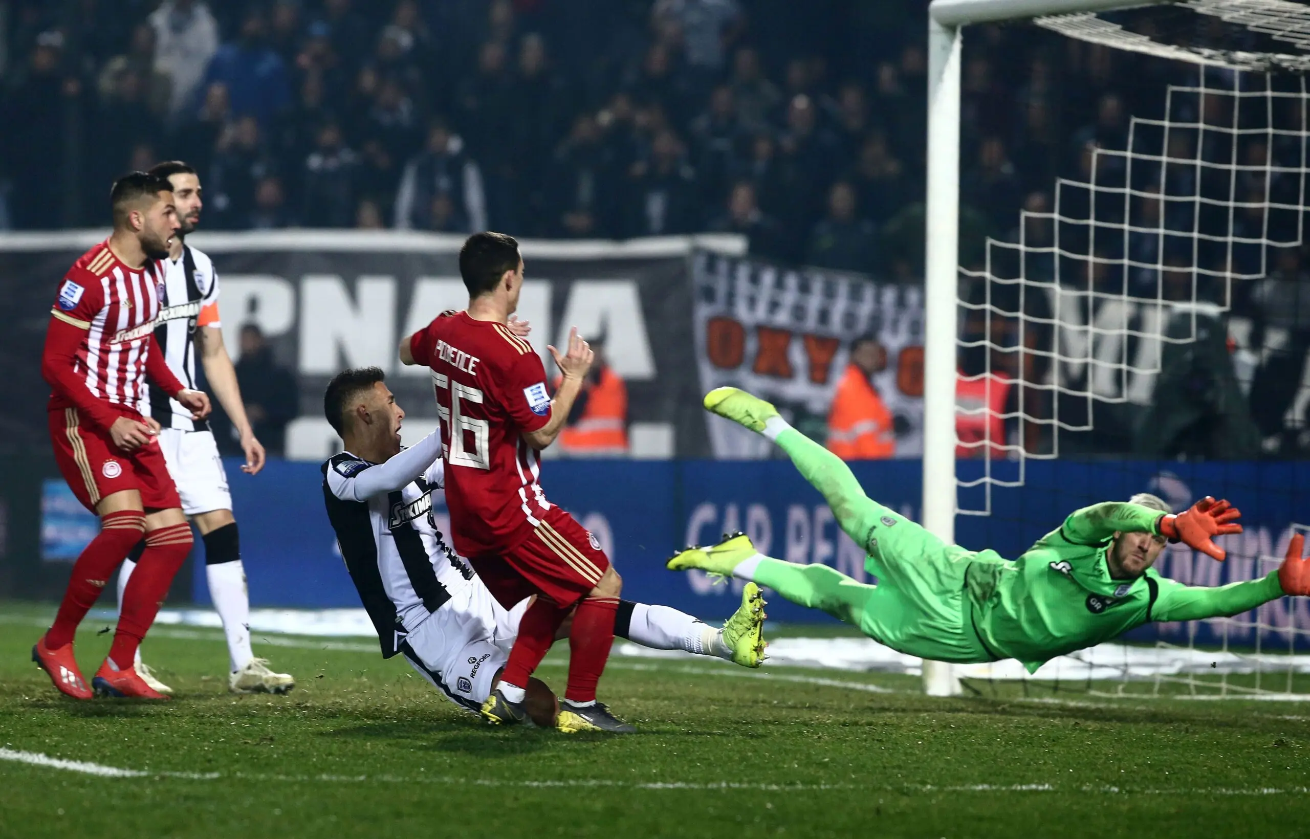 Στον τελευταίο αγώνα που πραγματοποιήθηκε στο γήπεδο «Γεώργιος Καραϊσκάκης», Ολυμπιακός και Παναθηναϊκός αναμετρήθηκαν για την Super League. Ο Ολυμπιακός, φιλοξενούμενος, ξεκίνησε τον αγώνα δυναμικά, με τον επιθετικό του να σημειώνει ένα γκολ μόλις στο 10ο λεπτό. Η αντίδραση του Παναθηναϊκού δεν άργησε να έρθει, με ισοφάριση με ένα εξαιρετικό σούτ από τον μέσο τους στο 34ο λεπτό.