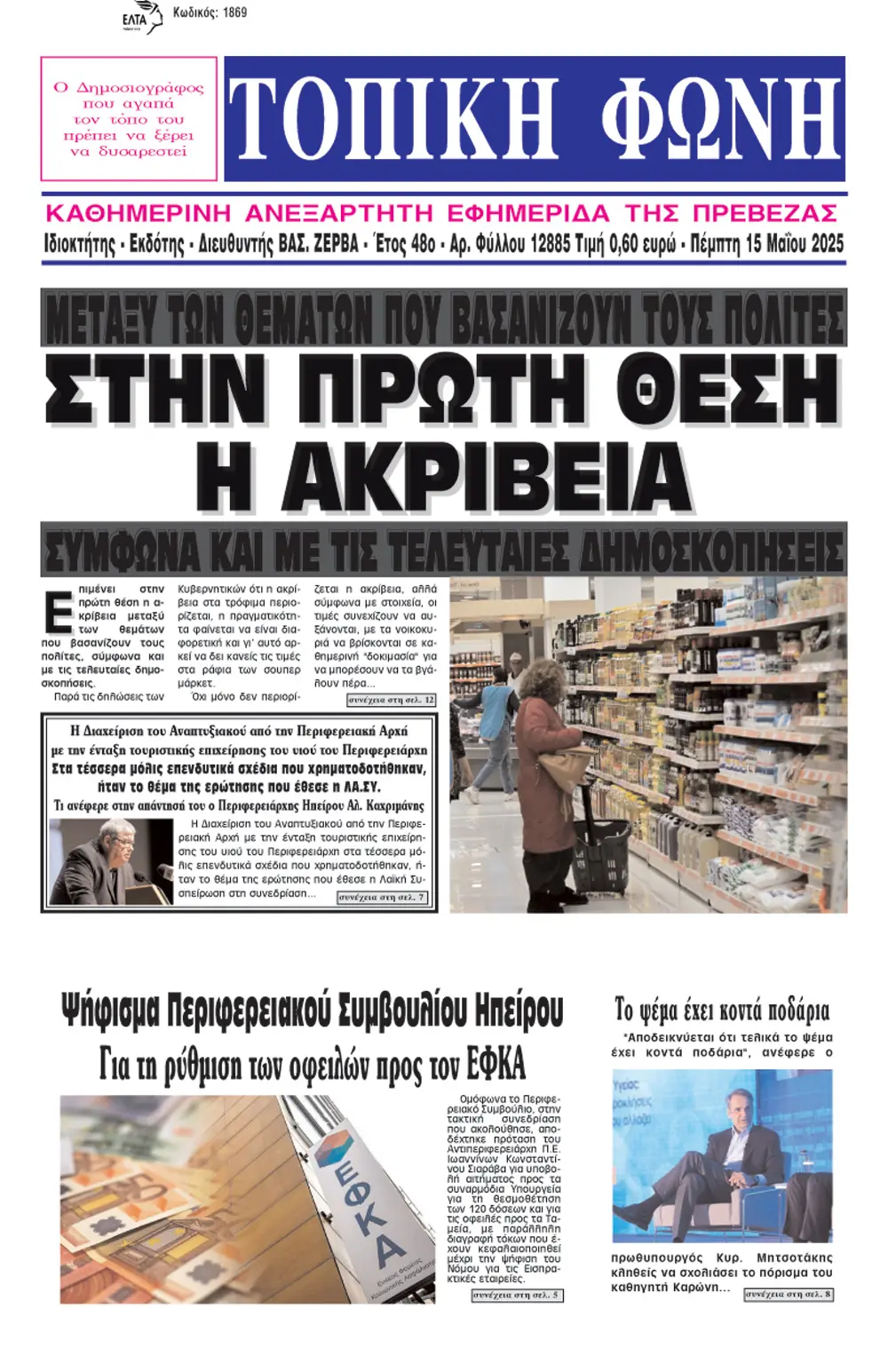 Σύμφωνα με τα δεδομένα της σημερινής ημέρας, η πλειοψηφία των εφημερίδων διάλεξε να εστιάσει σε δύο κύρια θέματα: την πολιτική κατάσταση στη χώρα και τις οικονομικές προκλήσεις που αντιμετωπίζει η ελληνική κοινωνία. Εφημερίδες όπως η Καθημερινή και ο Ταχυδρόμος αναφέρουν τις τελευταίες εξελίξεις γύρω από τις διαπραγματεύσεις της κυβέρνησης με τους διεθνείς πιστωτές, δίνοντας έμφαση στις πιθανές επιπτώσεις στους πολίτες.
