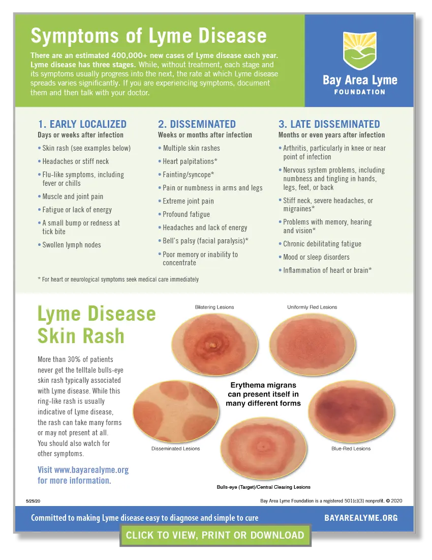 Η νόσος Lyme συνήθως εκδηλώνεται μέσω συμπτωμάτων όπως ο πυρετός, η κόπωση και οι πονοκέφαλοι. Ένα από τα πιο αναγνωρίσιμα σημεία είναι το «στόμα», ή πιο συγκεκριμένα, η ερυθηματώδης εξάνθημα που εμφανίζεται γύρω από το σημείο του τσιμπήματος. Αν και οι περισσότερες περιπτώσεις μπορούν να διαγνωσθούν με κλινικά συμπτώματα, η επιβεβαίωση συνήθως απαιτεί και εργαστηριακές εξετάσεις.